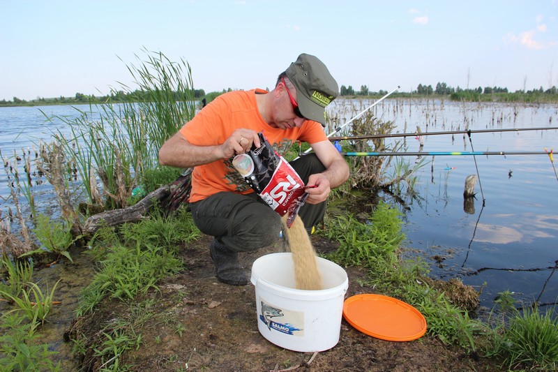 Оказавшись на месте, сначала замешиваю прикормку. Ее рецептура с ориентиром на линя может быть разной. Успешно ловлю этих рыб на профильную заводскую смесь «линь-карась». Причем лини позитивно реагируют на контрастирующий с черным дном прикорм. Хорошо проявляют себя прикормки из вареного пшена, смешанного с нежирным, подкисшим творогом, а также гороховая каша с анисовым маслом. Поэтому экспериментирование оправданно.