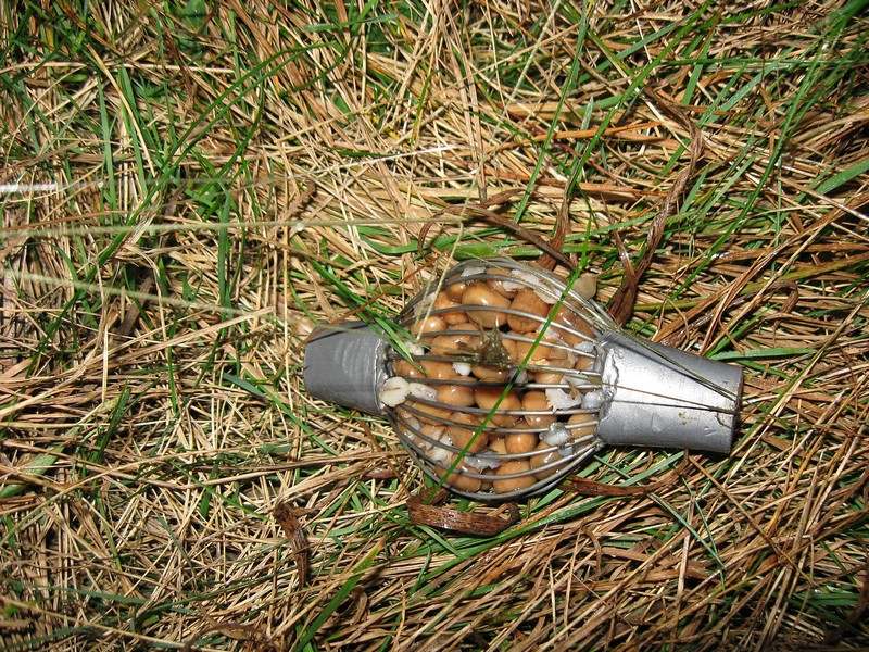 При донной ловле с обычными фидерными кормушками доставлять люпин в точку ловли в чистом виде сложно. Поэтому в моем регионе часть доночников даже вернулась к тяжелым проволочным кормушкам прошлых лет. Сквозь их прутья «фасоль», как иронично именуют люпин, медленнее вымывается течением.