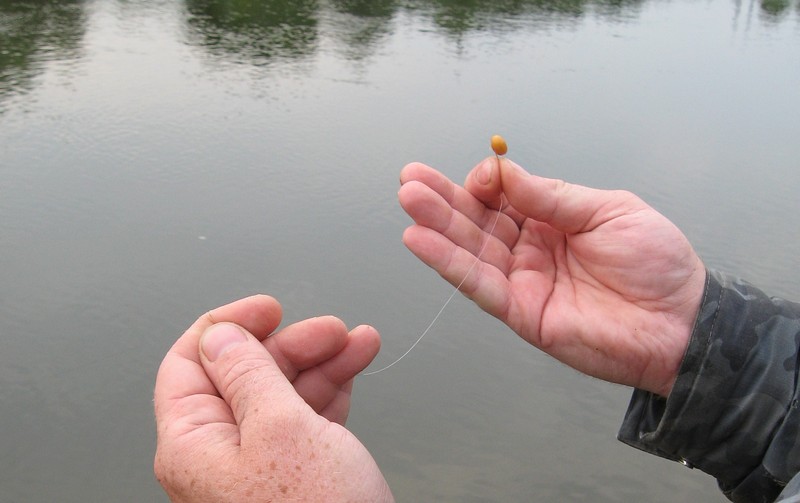 Вторая – после того, как крючок проходит через зерно, с него снимается шкурка. По мнению большинства любителей этой насадки, так рыба ее охотнее поедает. Шкурка снимается быстро, достаточно чуть надорвать ее ногтем или иглой.