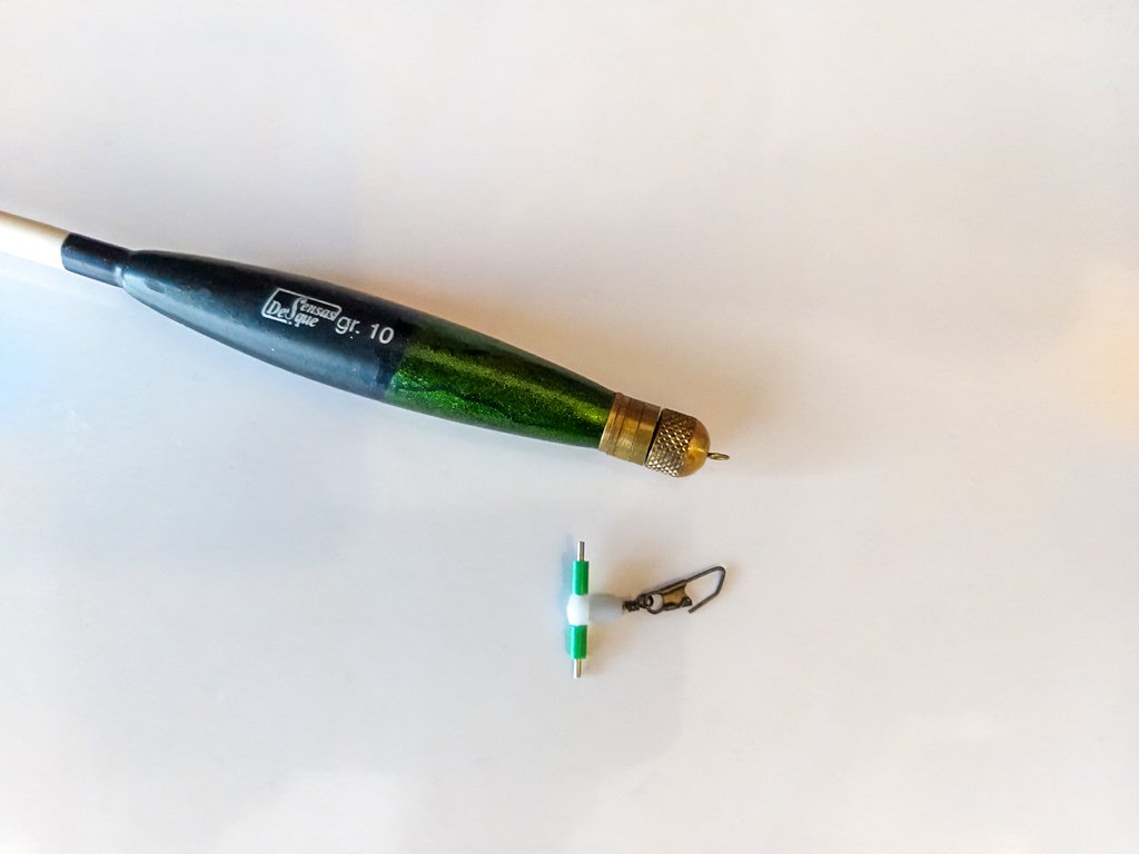 • С помощью вертлюжка с карабином и поплавочных стопоров