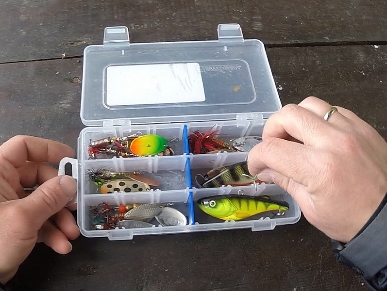 Не зная, что нас ожидает такой переменчивой весной, и сейчас набрал с собой коробок с самыми разными приманками, даже, по совету товарища, уже рыбачившего здесь в апреле месяце, переложил из зимнего ящика несколько раттлинов.