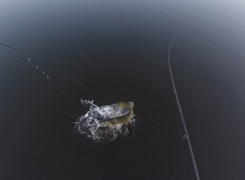 Оба комплекта хорошо подошли под ловлю на вертушки: с Delikado использовали и более мелкие блесны 3-го номера, с другим спиннингом – только «четверки». Забегая вперед скажу, что, хотя были поклевки и на вращалки-«тройки», все же основными стали блесны №4 весом порядка 10-11 г. Оптимально они подходили под нужную дальность заброса (в дальнейшем случались поклевки и на выбросе) и необходимую глубину проводки, а также хорошо чувствовались обоими спиннингами.