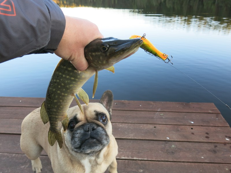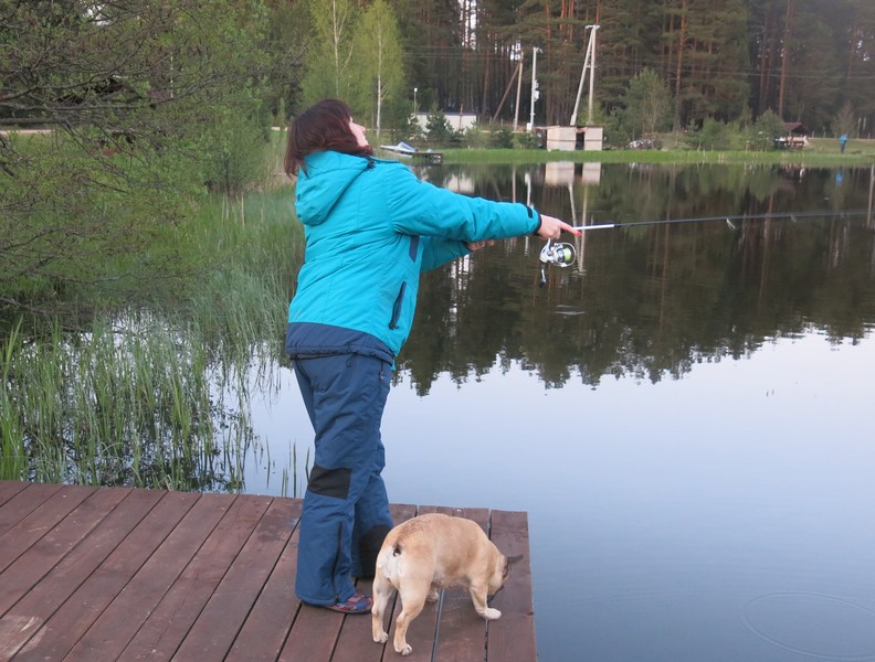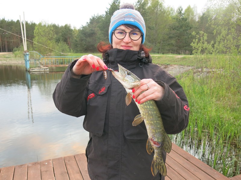 Снова больше всего поклевок было у дамбы, где, как и накануне, щука периодически гоняла малька. И опять много атак происходило у самых ног! Делая проводку более медленную, чем у меня, и доводя блесну до самых ног, жена почти все поклевки получала эффектные, с появляющейся вдруг из-под воды раскрытой щучьей пастью, кучей брызг, эмоций и адреналина. Правда, сходила при этом хищница почти всегда, как мы ни старались регулировать фрикцион и подавлять в себе резкость действий после неожиданной поклевки.
