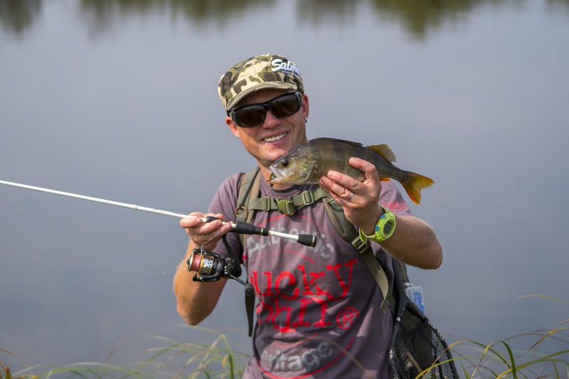 Самым дорогим комплектом, который я применял для речного микроджига, стал спиннинг Team Salmo Tioga Small Game длиной 2,16 м и тестом 0,4-5 г с катушкой Team Salmo Vantage 2000 весом 205 г и плетеным шнуром LJ Area Trout Game диаметром 0,07 мм. На такую снасть прошлой осенью ловились окуни весом до 500 г, попадались и небольшие щучки. Этот комплект получился у меня универсальным, пригодным так же для ловли на вертушки, мелкие воблеры и мормышку.