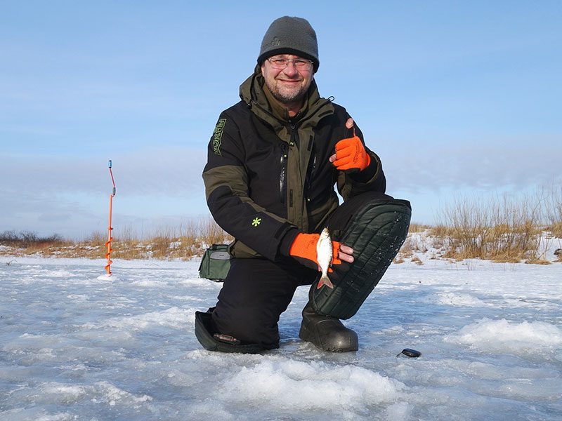 Сместившись на метр в сторону, в следующей лунке я пытаюсь повторить счастливую проводку: пауза в самой верхней точке подъема мормышки с последующим медленным опусканием ее вниз на несколько сантиметров. Поклевка в этот раз была в виде плавного «прижима» кивка. Мягко подсекаю. И вот он, первый настоящий горбач этой рыбалки тяжело ворочается на льду.