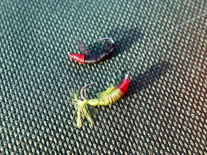 Мормышки с черными головками рыба «съела» в первую очередь. Привязывается к леске эта мормышка только за верхнюю петельку. Пробовал я вязать ее по-спортивному, за цевье крючка — не понравилось. Приманка потеряла изрядную долю колебаний.