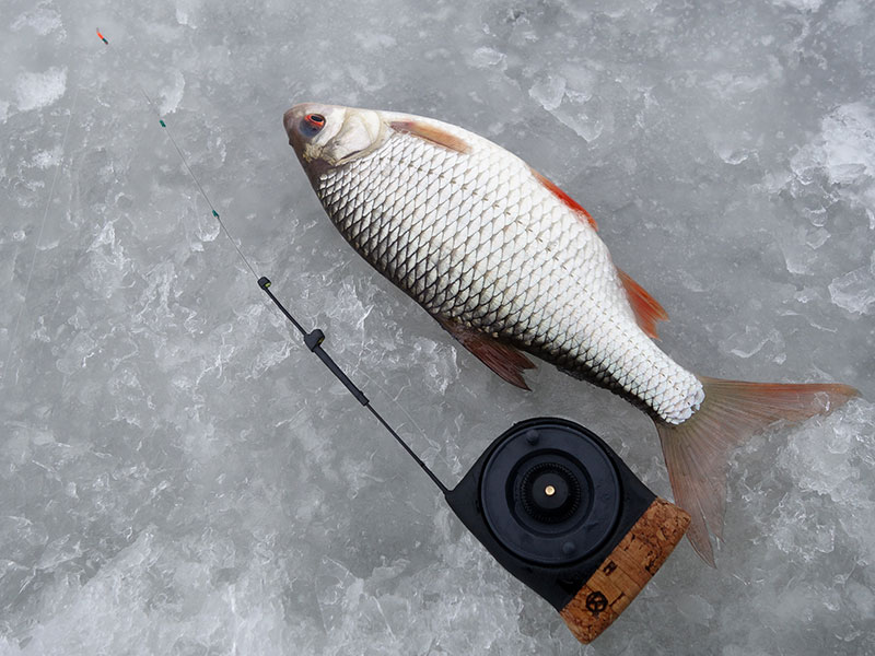 Опустив мормышку в лунку, я начинаю задавать ей плавную, с медленным подъемом игру. На второй проводке фиксирую легкое прикосновение рыбы. Но дальше пусто. Я уже готов был закончить с этой лункой и, остановив игру, начал присматриваться, куда можно переместиться. Но резкий удар по мормышке просто ошеломил меня. С непривычки подсечка получилась излишне резкой, а зимой такой номер не проходит. Солидная плотвица, я ее отчетливо видел у нижней кромки льда, сошла на финальной стадии вываживания. Видимо, от резкой подсечки крючок слишком сильно поранил мягкие ткани и выпал из пасти, когда рыба, увидев лунку, начала биться сильнее.
