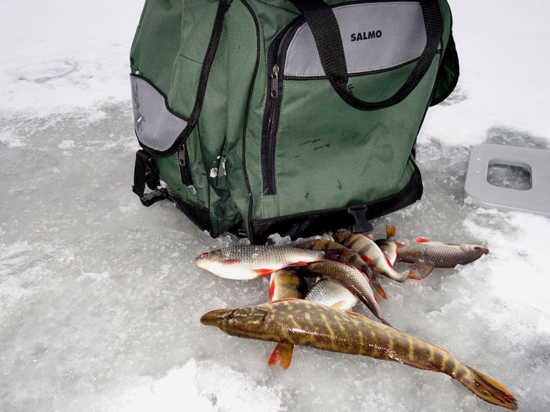 В тот день из 3-х лунок я поймал более 20 отменных окуней и плотвиц. Уверенные прижимы кивка и отчаянное сопротивление сильной рыбы — все это еще долго сверкало перед глазами.