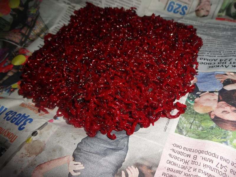 - Насадочный мотыль. Он же крупный. Как понятно из названия, это тот мотыль, который применяется для использования в качестве насадки. Самый крупный и, соответственно, самый дорогой. А бывает еще так называемый «уральский» насадочный мотыль (опять-таки, по ареалу обитания). Говорят, что он настолько крупный, что без труда шевелит газету, в которой находится!