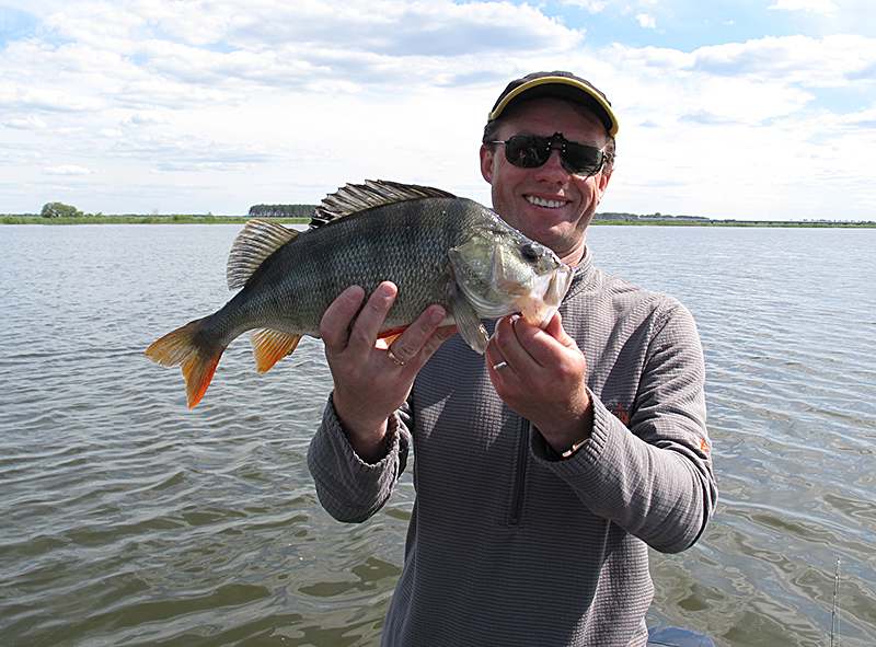 Сначала мне показалось, что лучший клев был в относительную прохладную погоду с ветром, но рыбалка 13 июня заставила в этом усомниться – в довольно жаркую и тихую погоду крупный окунь после обеда все же вышел покормиться. Наблюдался реальный выход горбачей, вплоть до того, что поклевки удалось снять на камеру, в том числе и вываживание экземпляра, завесившего 1125 г.