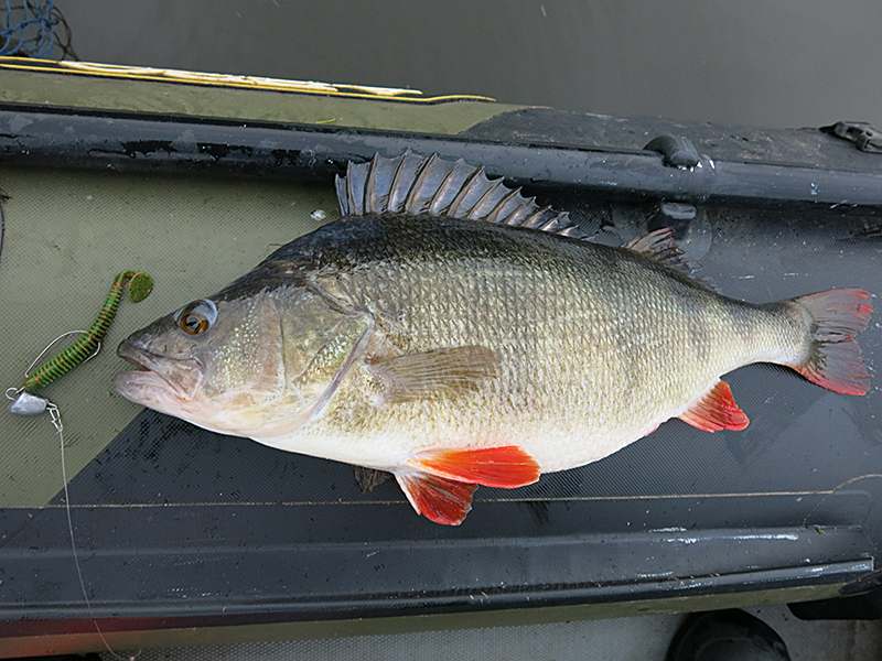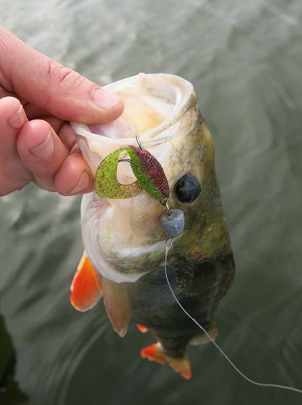 Летом тип приманок остался тот же, но размер уже пришлось менять в сторону уменьшения. Крупные «масляные» виброхвосты по окуню молчали, 3-дюймовый твистер Chunk Tail поклевки приносил, но не так регулярно, как хотелось бы. В итоге стал много экспериментировать с приманками, и выяснилось, что срабатывает именно их смена. Перемещаться приходилось не много, и на одной точке поклевки происходила тогда, когда забрасывал что-то новое. В основном это были все те же виброхвосты и твистеры. Самые крупные окуни клюнули на 3-дюймовый Spark Tail и J.I.B. Tail 2 дюйма от Lucky John.