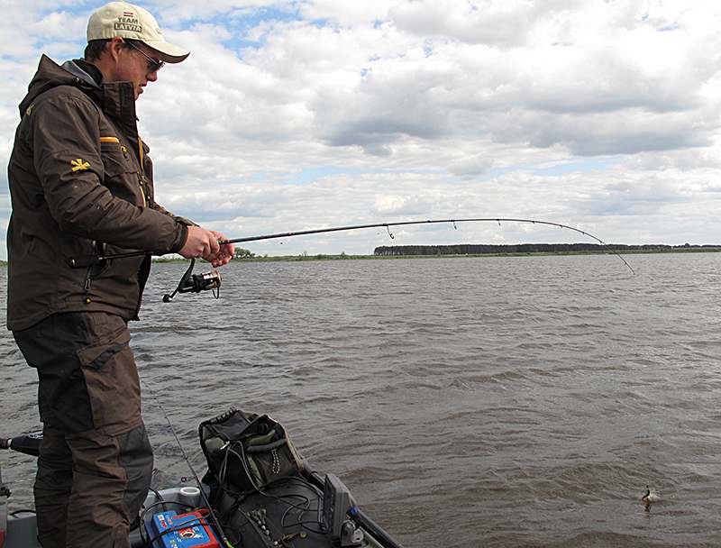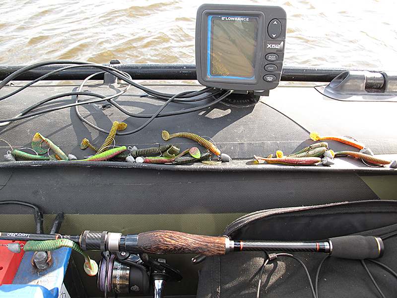 Посему якорюсь обычно у основания свала, отплыв метров до 10, чтобы проводка получалась полной. То есть приманку я обычно стягиваю. Хотя в зависимости от конкретной точки, часто получается и перебрасывать горку или бугор, сначала затягивая приманку на нее, потом уже сползая вниз. Если ловлю в затопленном русле реки, то могу стать посередине ямы, чтобы облавливать оба свала. В каждом частном случае может быть своя постановка лодки, но в целом концепция у меня такая – вести приманку с меньшей глубины на большую, делая заброс по ветру.