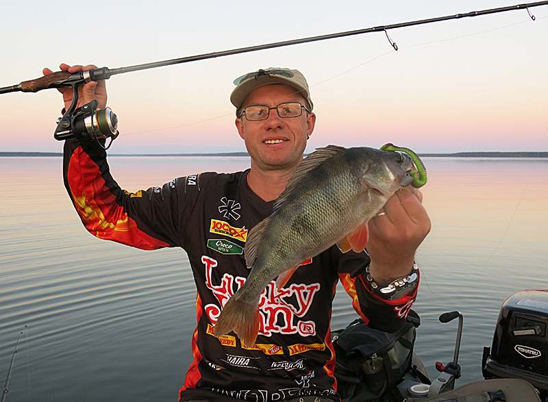 Здесь в первую очередь вспоминаем поговорку «большому куску и рот радуется». Особенно это касается осени. Разведывая несколько лет назад новый для себя искусственный водоем, не «упираясь» ни в какого конкретного хищника, в качестве универсальной приманки я избрал «лакиджоновский» виброхвост Long John в размере 4,2 дюйма. Первыми на него позарились щуки, а затем клюнул очень хороший окунь. И в дальнейшем большинство горбачей было поймано на эту, довольно крупную, на первый взгляд, для полосатого хищника приманку.
