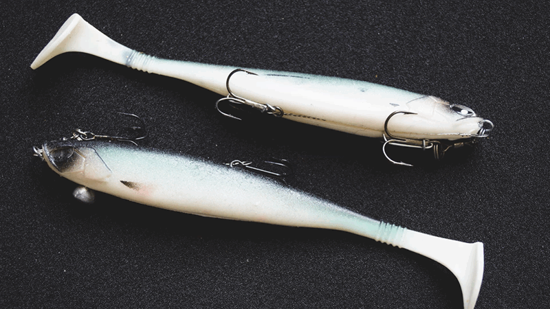 Таким образом, через разные способы фиксации тройников и использование огрузки, мы получаем очень универсальную приманку, закрывающую многие позиции в рабочей коробочке. В отдельных случаях можно взять на рыбалку только 1-2 свимбейта и быть с рыбой, чувствуя себя при этом совершенно комфортно.