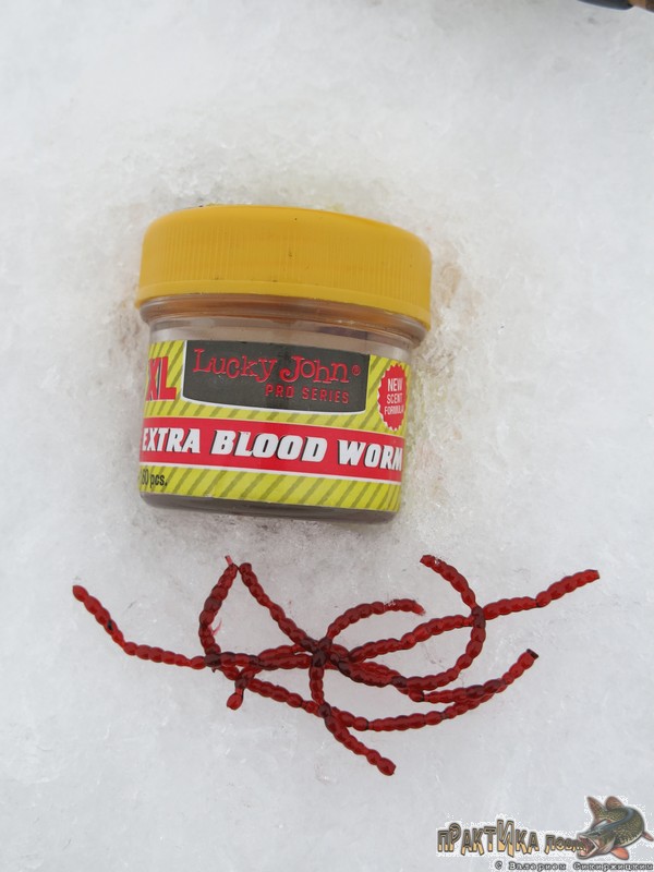 Однако твистер твистером, а в ассортименте Lucky John появился самый настоящий искусственный мотыль. По сути это зимняя мягкая резина под названием Extra Blood Worm, очень натурально имитирующая личинку комара-дергунца, то есть обычного мотыля и по запаху напоминающая «летнюю» съедобку.