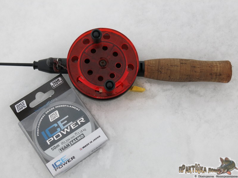 Переоснастив прошлой зимой удочку Salmo Ice Lider под балду (изначально я ей балансирил), намотал леску Team Salmo Ice Power заявленным диаметром 0,204 мм и разрывной нагрузкой 3,18 кг. Ей пока и пользуюсь, хотя хочу попробовать и флюорокарбон – уж очень пассивным бывает окунь на рабочих точках.