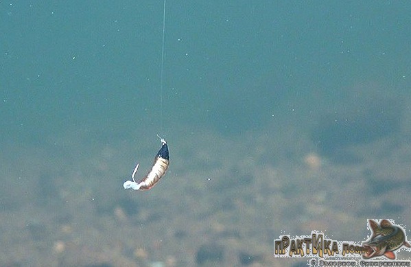 Как известно, из всех мормышечных рыб окунь любит наиболее активную проводку мормышки. Относится это как к приманке с наживкой, так и к безнасадочной. Поэтому основной акцент делаем на движении приманки вверх. Скорость проводки и амплитуду колебаний можно менять, в том числе на одной лунке. Паузы в игре я тоже делаю регулярно. Хоть окунь чаще атакует безмотылку именно в движении, иногда стоит дать ей повисеть в толще воды. Полезно начинать проводку с постукивания мормышкой по дну. Безмотылки – приманки достаточно объемные, и небольшое количество мути подымать они будут. И такой прием часто привлекает окуня к лунке.
