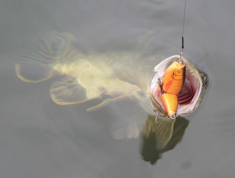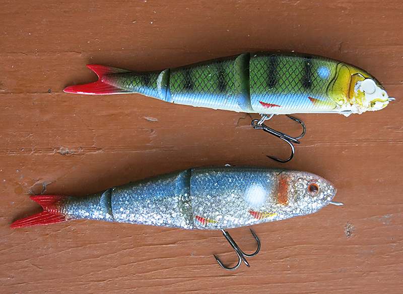 Эффективными как по возможности выполнять проводку, так и по уловистости, на мелководье могут быть джеркбейты. Тут я много не экспериментировал, предпочитая бросать рабочую классику – Salmo Slider. Для стандартных снастей самый ходовой размер – «семерка». Проводка – короткие непрерывные подергивания с подмоткой катушки, обычно без пауз. Могу половить и тяжелыми «джерковыми» снастями, тогда в ходу уже Slider 10, а также пуллбейт Fatso 10. Большой «Слайдер» чаще использую плавающий, «Фатсо», наоборот, – тонущий. Проводка последнего медленная равномерная, а также с потяжками и короткими паузами и стоп-энд-гоу.