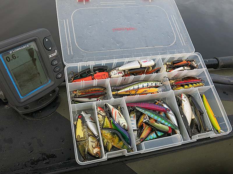 В любом случае приспособиться ловить даже на полуметровых глубинах можно. В первую очередь внимание уделить нужно выбору приманок. Типы их могут самыми разными – воблеры, вертушки и колебалки, свимбейты и джеркбейты, и т.д. Обычно они разложены у меня по разным коробкам, но перед предстоящей рыбалкой на мелководном водоеме, собираю одну какую-то общую. Что может попасть в такой мелководный набор, сейчас и расскажу.