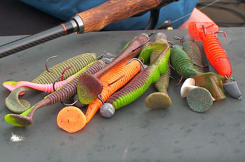 Основные приманки – это виброхвосты. Четыре года назад в ассортименте мягких приманок Lucky John появилась плавающая съедобка Joco Shaker и сразу заявила о себе как отличная добытчица осенних щук. Если окуней и судаков ловил я на меньшие размеры, то для щуки стал использовать только 4,5 дюйма (11,4 см). Самыми рабочими расцветками стали «оливка» и «пион» – F01 и F08.