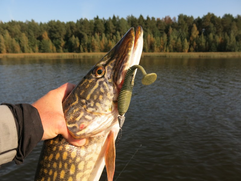 Если в теплое время года закономерности между размером щуки и приманки, на которую она клюнула, особо не прослеживается – неплохие экземпляры попадались даже на 2-дюймовые твистера, то осенью, как мне кажется, стоит уделить внимание именно крупному силикону. Поэтому из возможных размеров съедобной резины я обычно выбираю самые большие.