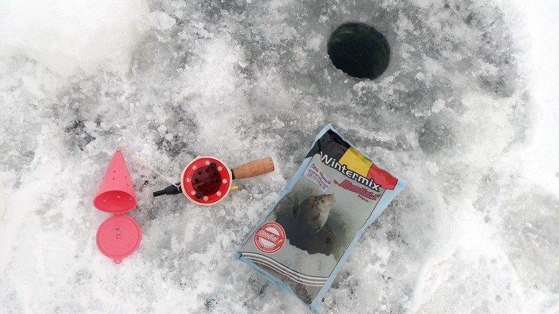 Прикорм высыпается в лунку при помощи специальной кормушки, либо напрямую в лунку с образованием питательного столба. В первом случае в качестве профильного лещового прикорма, не требующего дополнительных ингредиентов, нынешней зимой себя хорошо зарекомендовал MONDIAL-F лещ/черный от SENSAS. Во втором я по-прежнему использую обычную манку, крупинки которой дают при погружении наилучший эффект.