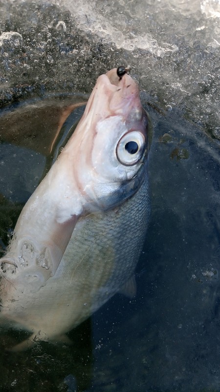 По ходу рыбалки эффективным оказывается чередование прибрежной и глубинной ловли. При этом результат могут дать как изначально пробуренные лунки, так и новые, которые следует сверлить не ленясь. На малых глубинах взял за практику не очищать лунки от ледяного крошева, чтобы проникающие солнечные лучи не отпугивали рыбу. Отверстие для спуска приманки делаю ручкой черпака либо камышом. Если дни выдаются особенно светлыми, предпочитаю ловить на участках с непрозрачным льдом, под которым рыба ведет себя смелее, либо ищу участки акватории со снежными наносами.