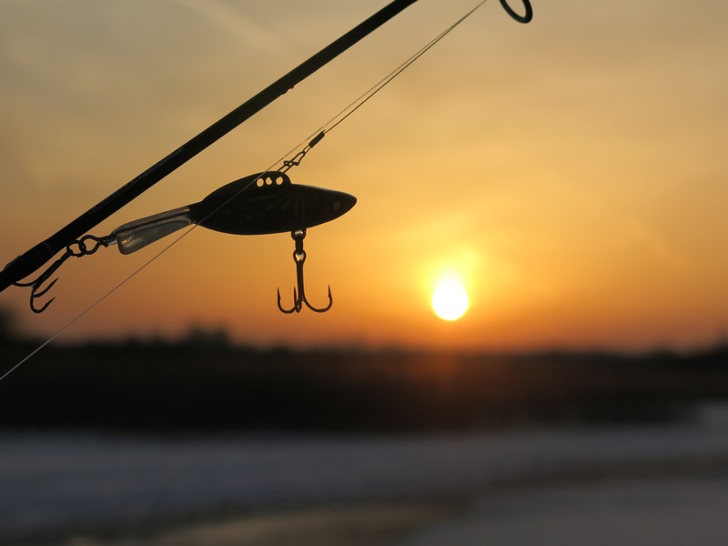 Больше уловистый цвет не менял, и перед закатом удалось поймать неплохую по балансирным меркам хищницу килограмма под два. Сработавшая лунка была расположена уже на одном из свалов, недалеко от полосы тростника.