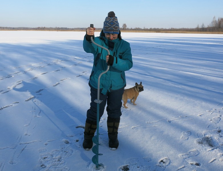 Первая и единственная полноценная рыбалка со льда этой зимой состоялась у меня в феврале месяце. Да и то крепкий лед удалось найти не сразу. Начинали ловить на торфяниках, но там много где гуляла вода, потому после обеда переехали на небольшое водохранилище. Нижняя его часть была открытой, а вот в верховье увидели много следов других рыболовов и множество лунок. Значит, можно будет здесь безопасно половить.