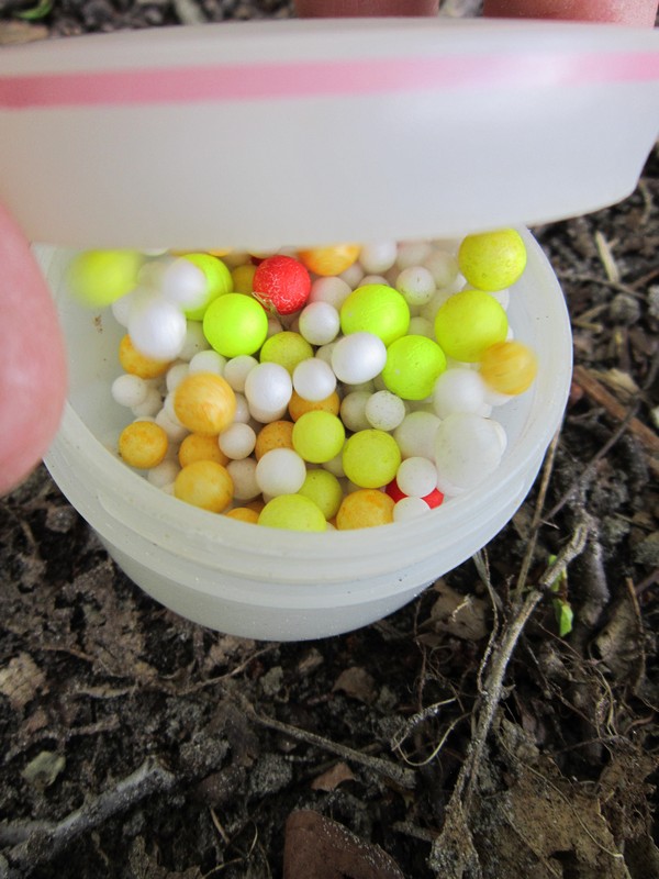 Указанное обстоятельство и подтолкнуло к дальнейшим экспериментам, ведь горошина пенопласта ассоциирующуюся с зернами той же кукурузы, гороха, перловки и т.д. Особенно если она еще и окрашена под их цвет. Плюс указанный полимер хорошо держит запах. Производители пенопластовых шариков предлагают их с запахами аниса, меда, ванили и т.д. Кроме того, при желании можно самостоятельно придать такой насадке любой запах, для чего достаточно перед забросом просто распылить на них содержимое флакончика с заранее приготовленным аттрактантом.