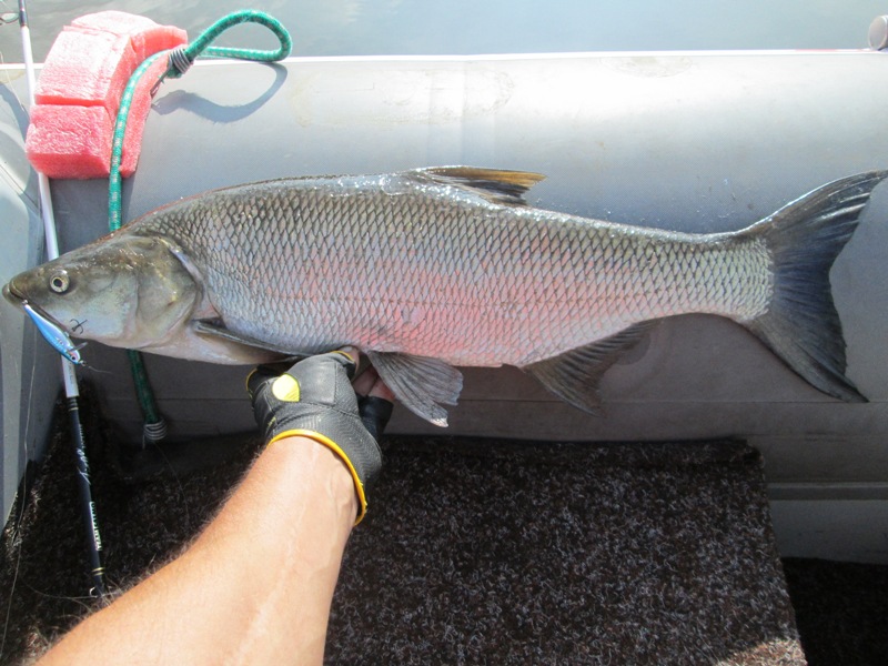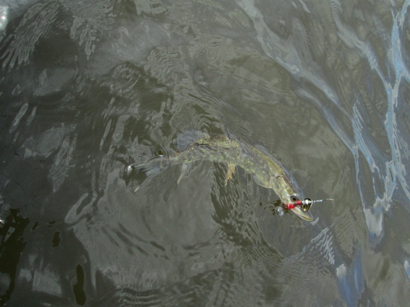 Размяв ноги на берегу, возвращаюсь в лодку, с берега неплохо клюет, но лодка дает оперативный простор для лова, позволяет обловить всю акваторию реки. Облавливать русловые свалы и само русло удобнее и продуктивнее джигом, размер резины 2,5-4 дюйма. Немного изменяю стиль проводки, кончиком спиннинга делаю резкий взмах вверх, чтобы приманка максимально взлетела, выбираю катушкой свободный шнур до натяжения, восстановив контакт с приманкой, резина медленно парит 5 секунд, от обычных 3. Щуке это нравиться и она активнее реагирует на такую проводку.