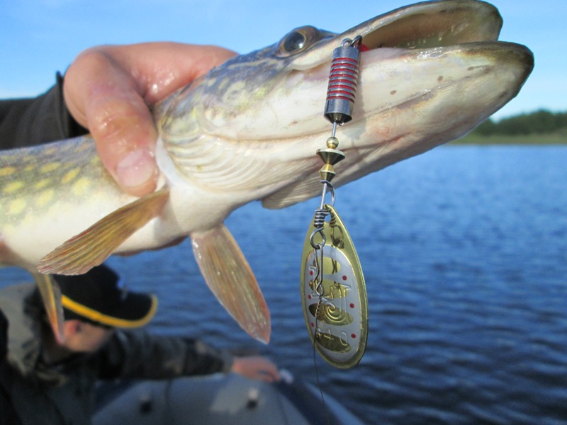 Приехав на такое место, спускаю лодку на приток с медленным течением, река в этом году не узнаваема. До уровня не хватает примерно 3 метра, такой аномально низкий уровень воды последний раз был зафиксирован в 1945 году. Поэтому я буду рассказывать про обычные условия лова, так как аномальные бывают очень редко. Течение в притоке Припяти медленное, и управлять лодкой достаточно комфортно. Передо мной на другом берегу реки расположен мелководный старик, средняя глубина которого один метр, длина составляет 300 метров, ширина 100 метров. В нем визуально заметна активность хищника, в разных местах видны всплески щуки. Самый быстрый облов можно провести вертушкой, в таких случаях я использую блесну с круглым лепестком (типа «Аглия») №3, меньше использовать не целесообразно, так как в улове будет присутствовать мелкая щука.