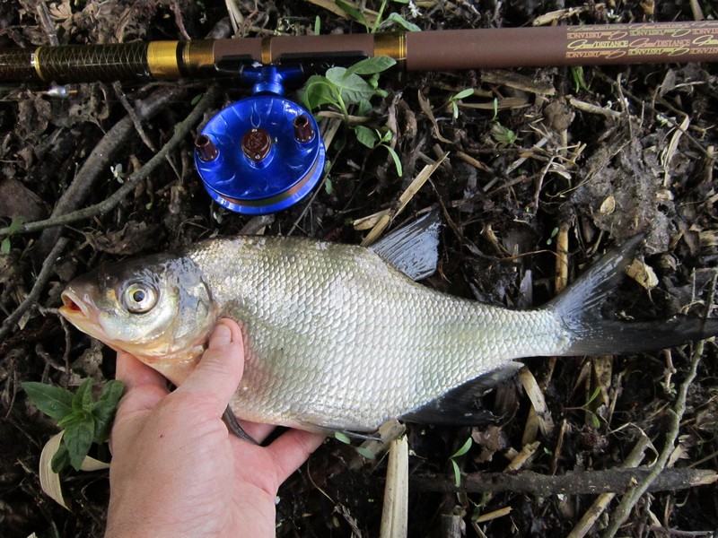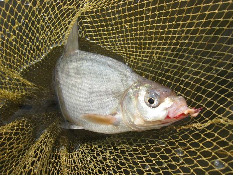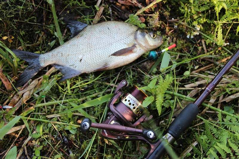 Попросив приятелей не шуметь, прежде всего – не топать на мостике, чтобы не распугать рыб, подбрасываю в окошко меж стеблей прикормку, минимизируя всплески горсточками питательных крошек. В результате плотву начинаем ловить одновременно втроем, вытягивая одну за другой. А через час после очередного заброса мой поплавок слегка покачнулся и плавно лег на воду. Выполнив подсечку, поднял из воды неплохого подлещика.