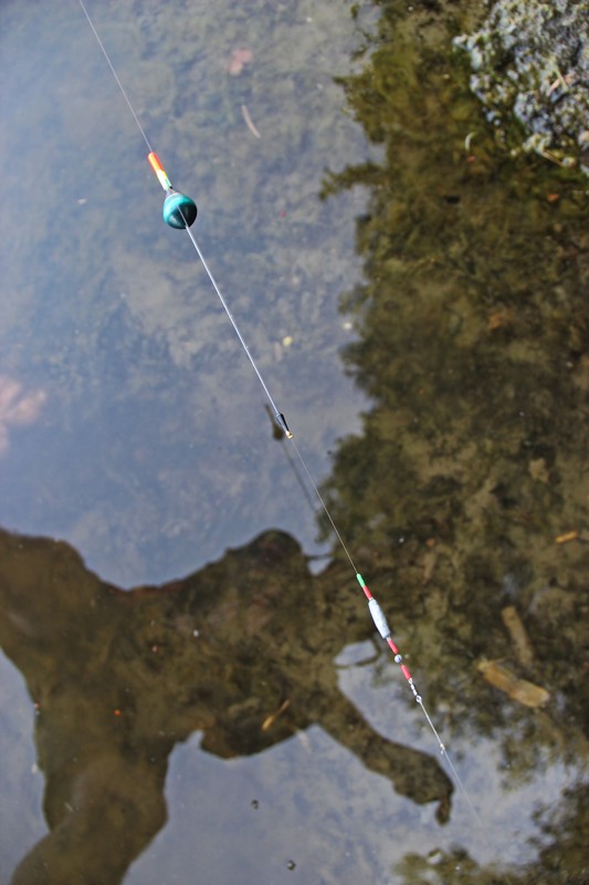 Так как в большинстве случаев дистанция ловли небольшая, поплавка грузоподъемностью 1,5-2 г вполне достаточно для формирования гармоничной оснастки. Причем чаще всего у меня востребованы сигнализаторы поклевок с глухим креплением в двух точках. Но если большинство забросов планирую делать в окна среди растительности, выбираю скользящий вариант с двумя пропускными колечками. При таком выборе во время заброса поплавок упирается в вертлюжок перед поводком, смещая сюда же центр тяжести всей оснастки. В результате удобно выполнять плавный выверенный маятниковый заброс, либо используя длинное (5-7 метров) удилище, просто опускать оснастку меж травы. Поплавок после заброса сразу принимает вертикальное положение, леска под тяжестью груза и приманки бежит через его кольца строго вниз до точки упора верхнего колечка поплавка об ограничительный силиконовый стопор. В результате оснастка не путается даже в тех случаях, когда окошко меж «травы» имеет крайне малые размеры.