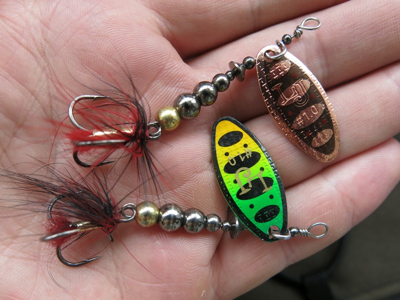 Мелководные и тихие участки часто облавливаю классикой – «лакиджоновскими» вертушками Bonnie Blade. Во 2-м размере вес такой блесны 4,3 г. Расцветки примерно те же – в основном медные и бронзовые.