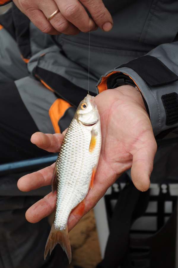 После того, как мне удается найти нужную глубину, я перемещаю поплавок вверх по леске на длину поводка. Для болонской удочки я использую относительно длинные, 30-сантиметровые поводки. Окончательную подгонку снасти произвожу с помощью нижней дробинки-сигнализатора. В процессе рыбалки часто возникают ситуации, когда рыба начинает капризничать, и самым быстрым способом переломить ситуацию в свою пользу является смена презентации приманки. Изменяя положение этого грузила, можно добиться того, чтобы крючок с приманкой будет едва касаться дна или же полностью лежать на нем.