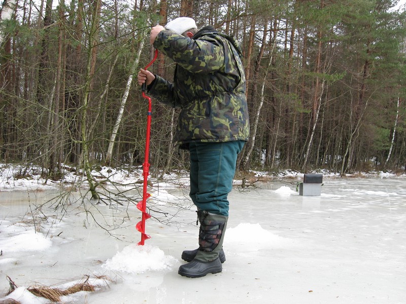 Сами лунки тоже должны делаться с умом. Учитывая, что ловля в основном ведется в прибрежной акватории на небольшой глубине, шугу и снег лучше не вычищать, проделывая лишь небольшое отверстие ручкой черпака или стеблем камыша для пропуска приманки. Когда клюют одни окуни, ледобур рациональнее заменить пешней вне зависимости от толщины льда. Стук окуни любят, а малые отверстия во льду поспособствуют маскировке.