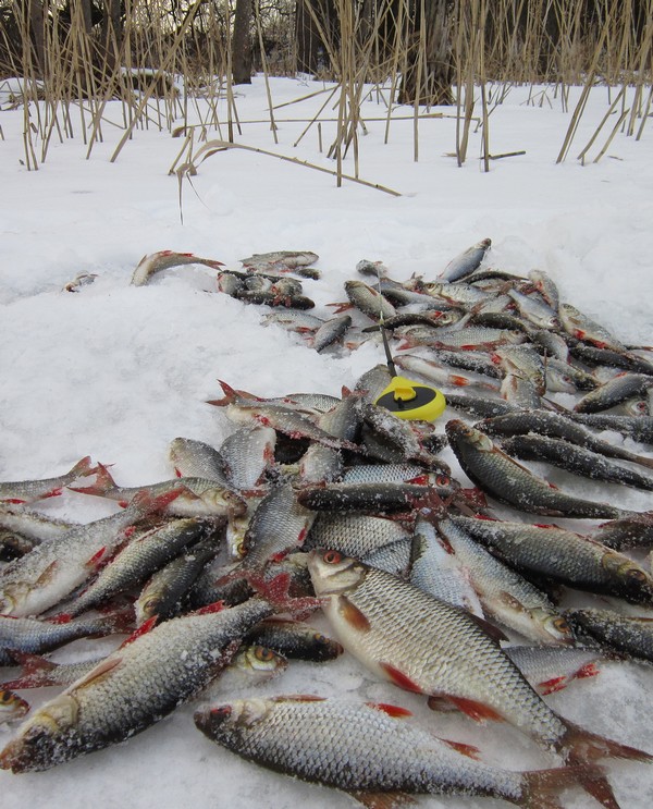 Прикармливания рыбалка среди корчей не требует. Рыба уже собрана в одной точке и ее надо лишь поймать. Так что прикорм может оказаться лишним. Если его и применять, то лишь в определенных ситуациях и умеренно. Классически для этих целей лучше всего подходит мотыль. Он точно не навредит, ибо постоянно обитает в водоеме. При ловле красноперки и плотвы при ослаблении клева сыплю в лунку немного сухой манки или молотого печенья, выдерживаю паузу и затем снова проверяю лунки. Эксперименты всегда уместны.