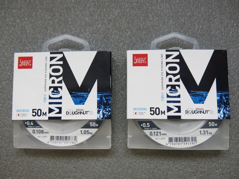 Леску для удочек подбираю в зависимости от величины (веса) приманки и предполагаемого размера рыбы. Обычно ее диаметр колеблется в диапазоне от 0,1 до 0,14 мм. Максимальная толщина лески, которую использую в этом сезоне – 0,153 мм, для ловли крупного окуня. Такой трофейной леской стала Lucky John Micron. Понравилась она еще тогда, когда выпускалась под маркой Team Salmo – гладкая, прочная, в меру мягкая, с отсутствием «памяти». На другие удочки намотал леску Micron в диаметрах 0,108 и 0,121 мм.