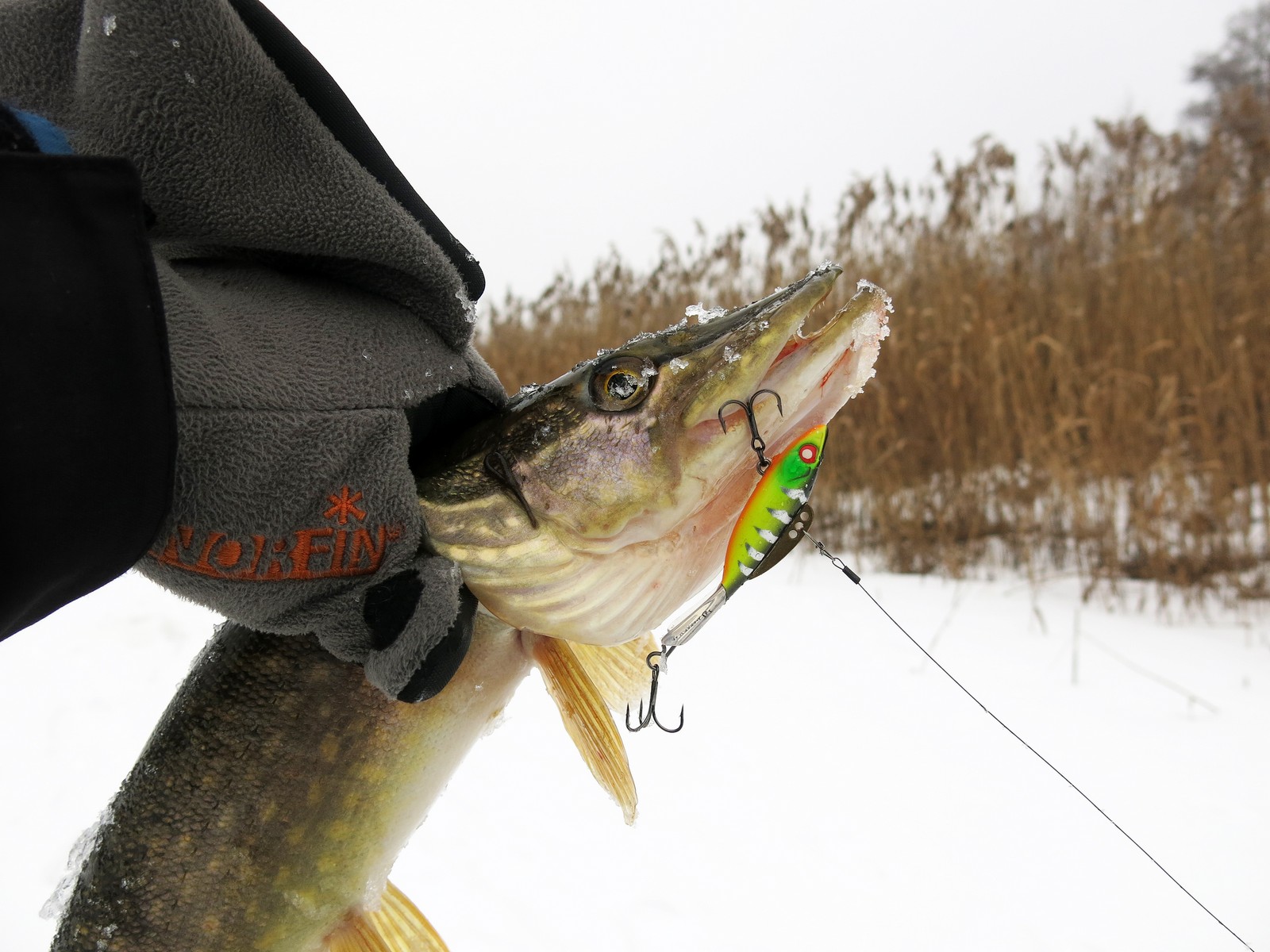 Также стоит уделять внимание первому опусканию балансира в лунку – очень часто поклёвки щуки следуют сразу же. Поэтому приманку в лунку не бросаем, а опускаем аккуратно, сохраняя натяжение лески. Если не ошибаюсь, именно на Fin 5 у меня было больше всего таких поклёвок.