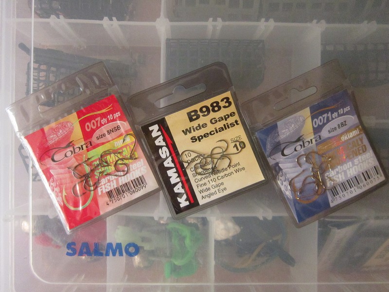 Крючки использую профильные, которые обладают требуемой формой изгиба и повышенной прочностью. Их ходовые номера – 8-12. Несколько отличных вариантов Cobra и Kamasan приведены на фото