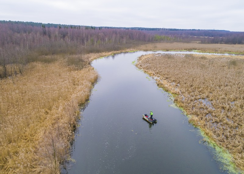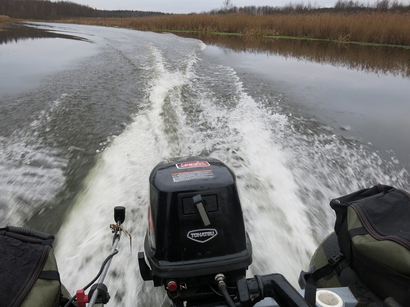 И, наконец, на одном довольно широком речном разливе все-таки попали на активный клев щуки. На примерно 200-метровом участке довольно глубокого прогона около десятка поклевок за час-полтора зафиксировали. Чтобы рыбу не пугать, смещаясь, мотор не заводил, а сплавлялся вниз по ветру и течению и бросал якорь.
