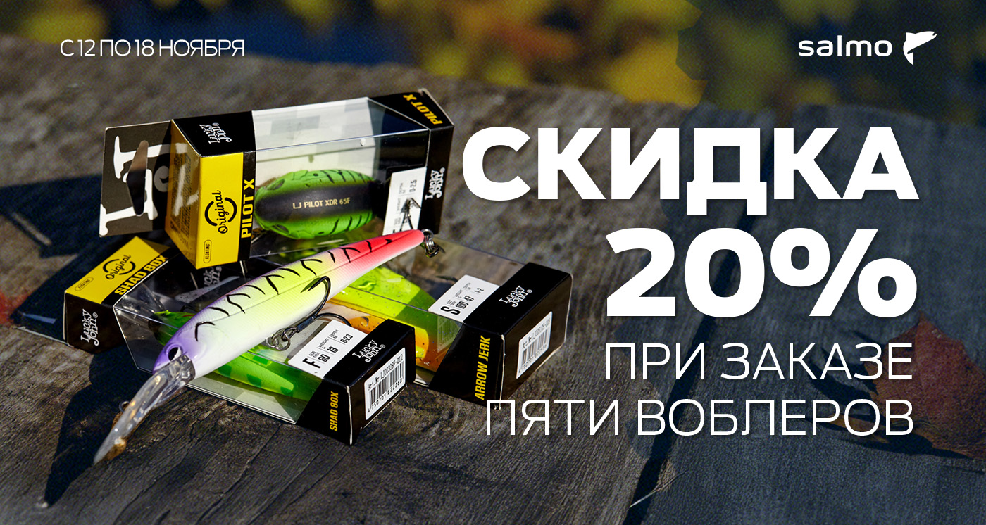 С 12 по 18 ноября купите в интернет-магазине Salmo.by пять любых воблеров и получите скидку 20% на всю пятёрку!